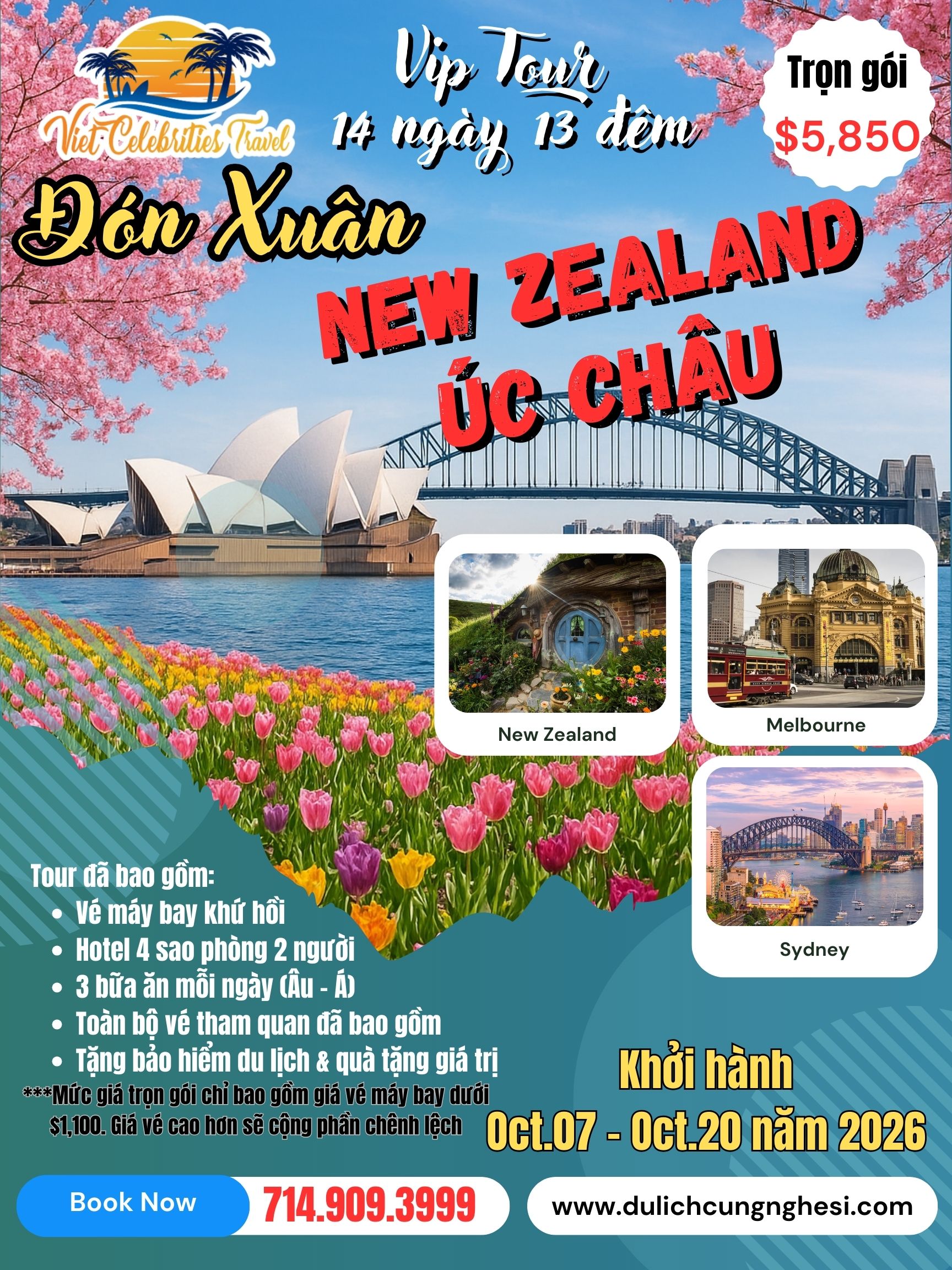 Giá Tour trọn gói: $5,950 ( khởi hành từ 50 tiểu bang Hoa Kỳ )