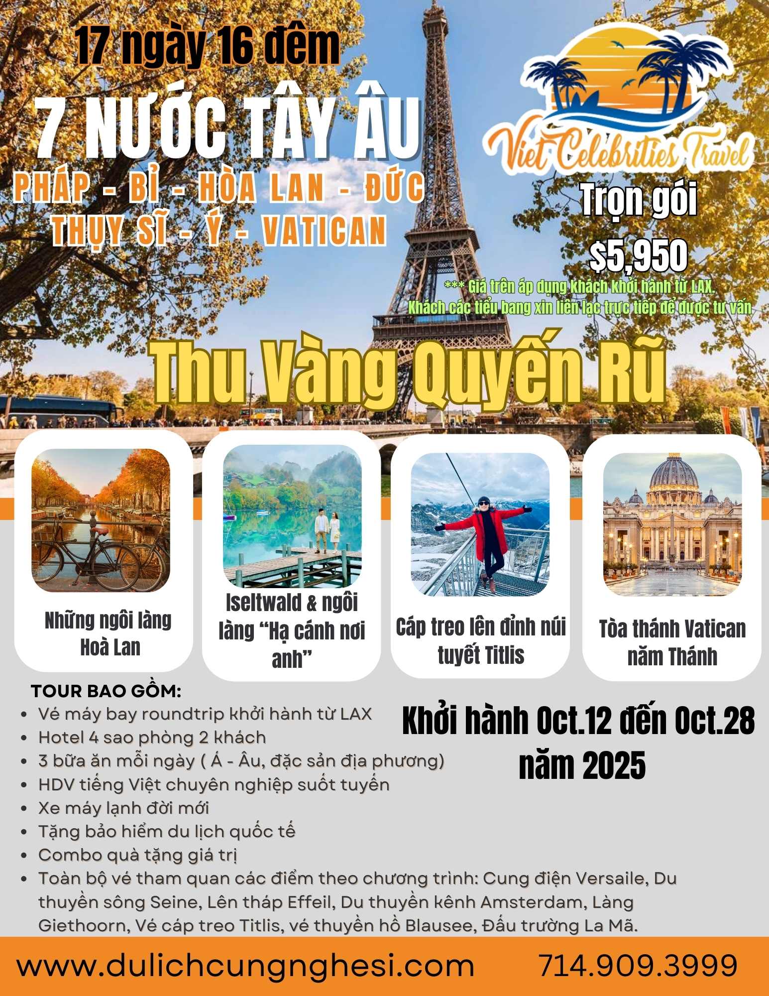 Tour 7 nước Tây Âu 17 ngày 16 đêm mùa thu tháng 10/ 2025