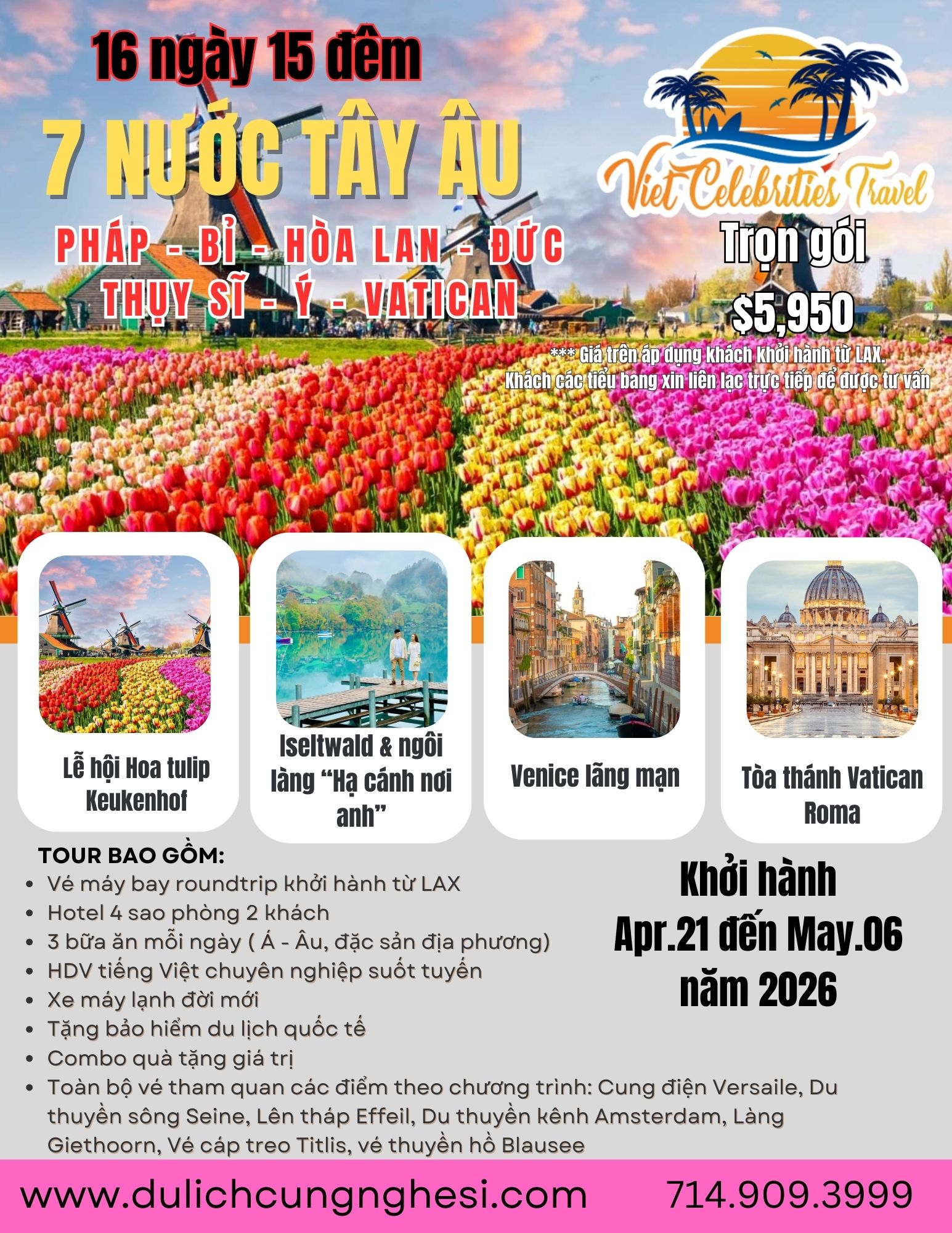 Giá trọn gói: $5,950 ( Dành cho khách khởi hành từ LAX)