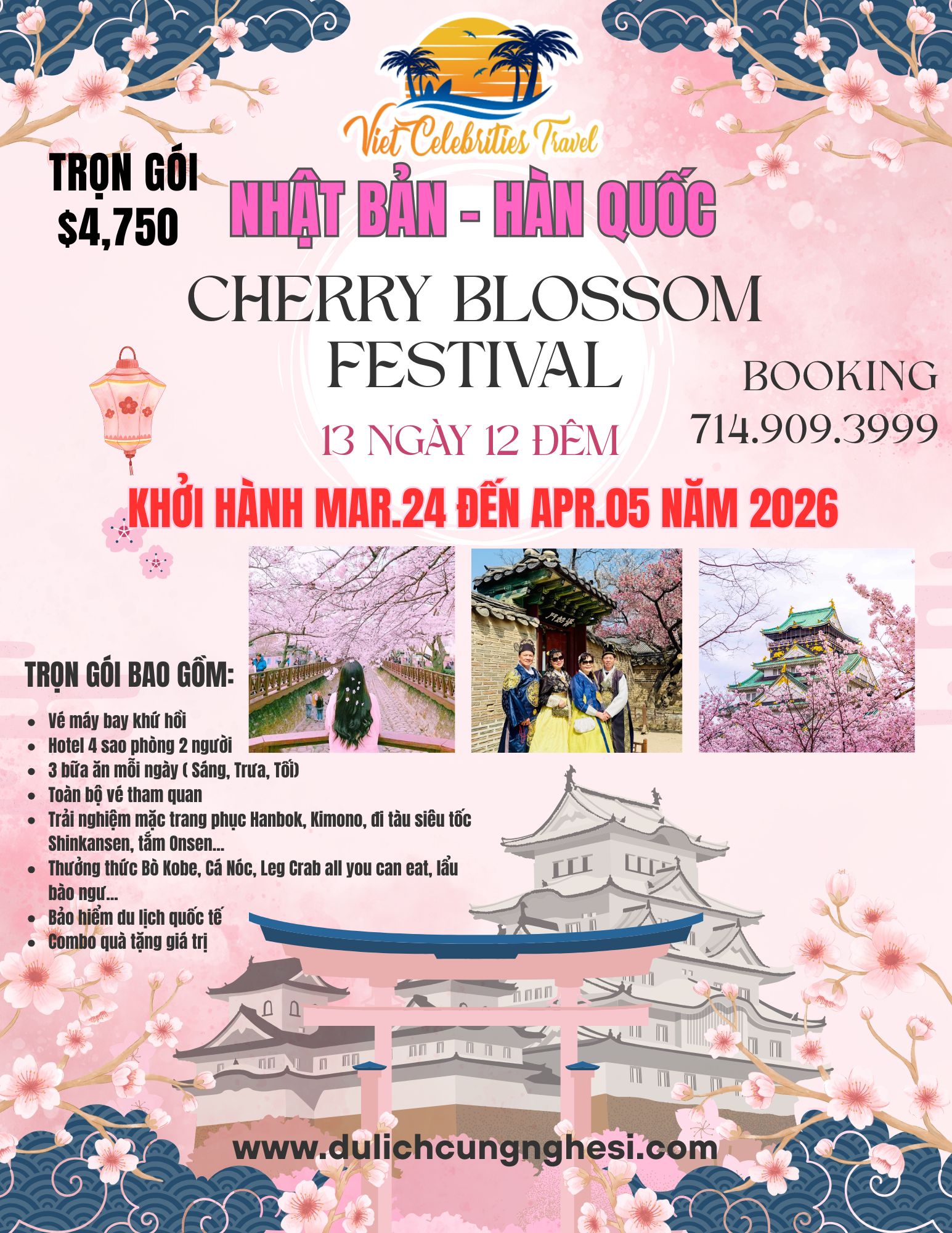Tour Hàn Quốc - Nhật Bản mùa xuân 13 ngày 12 đêm tháng 3/2026