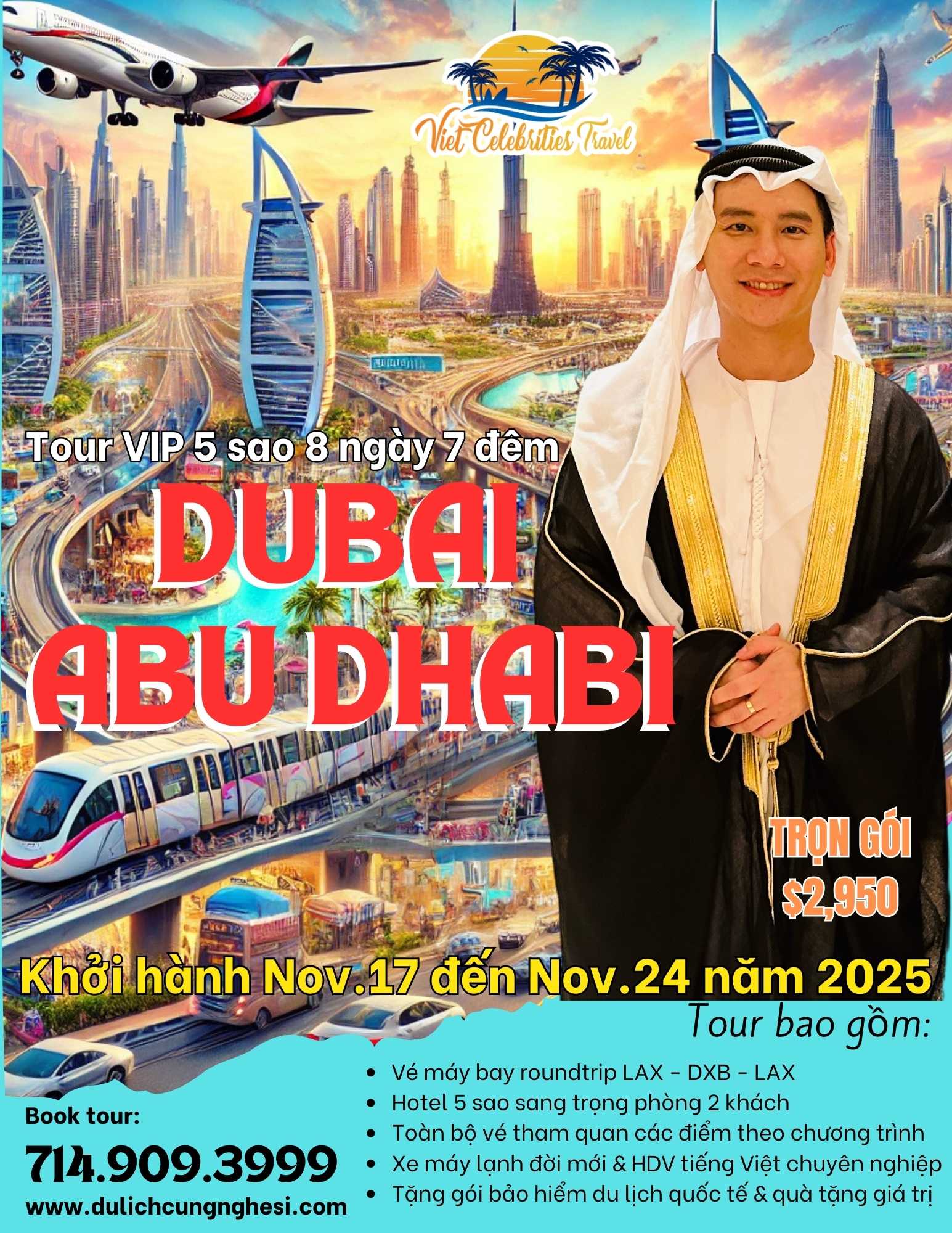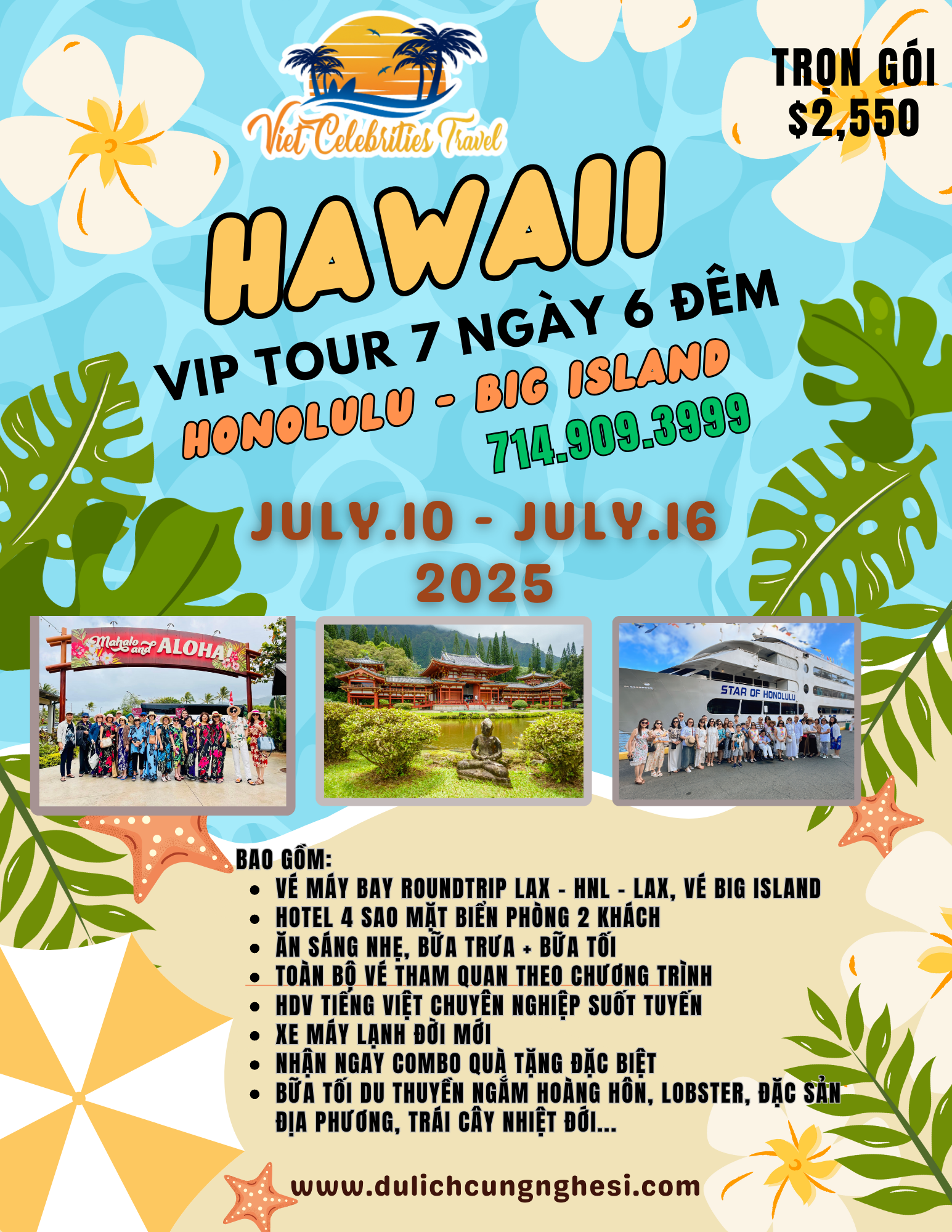Giá Tour trọn gói: $5,950 ( khởi hành từ 50 tiểu bang Hoa Kỳ )