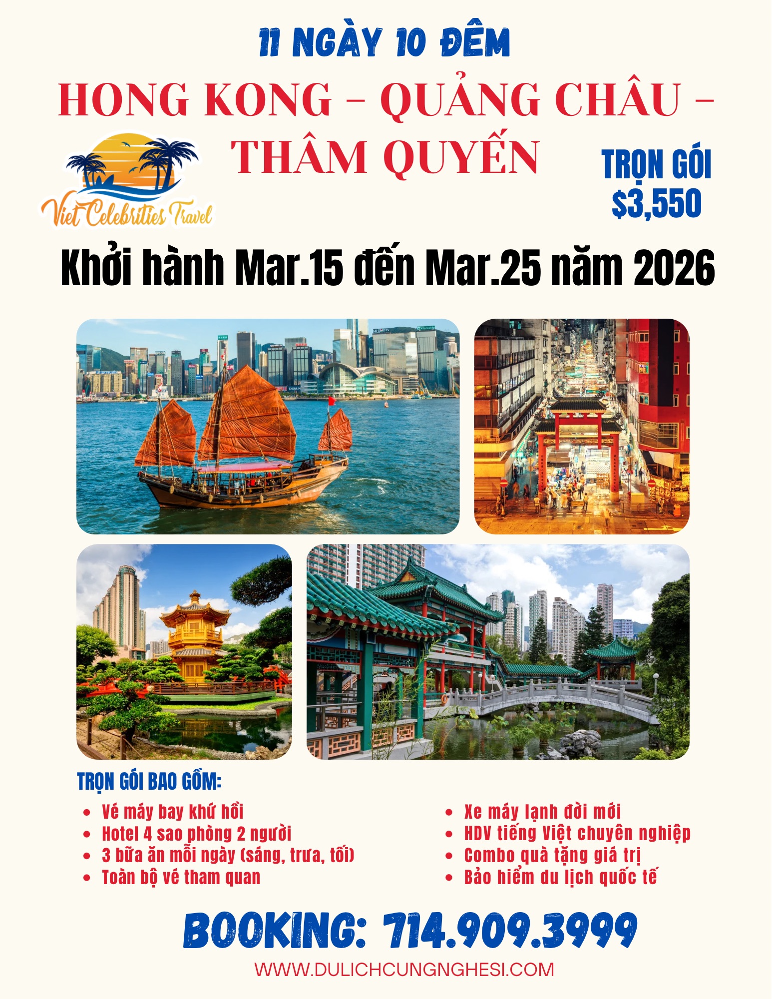 Khởi hành : Mar.15 đến Mar.25 năm 2026