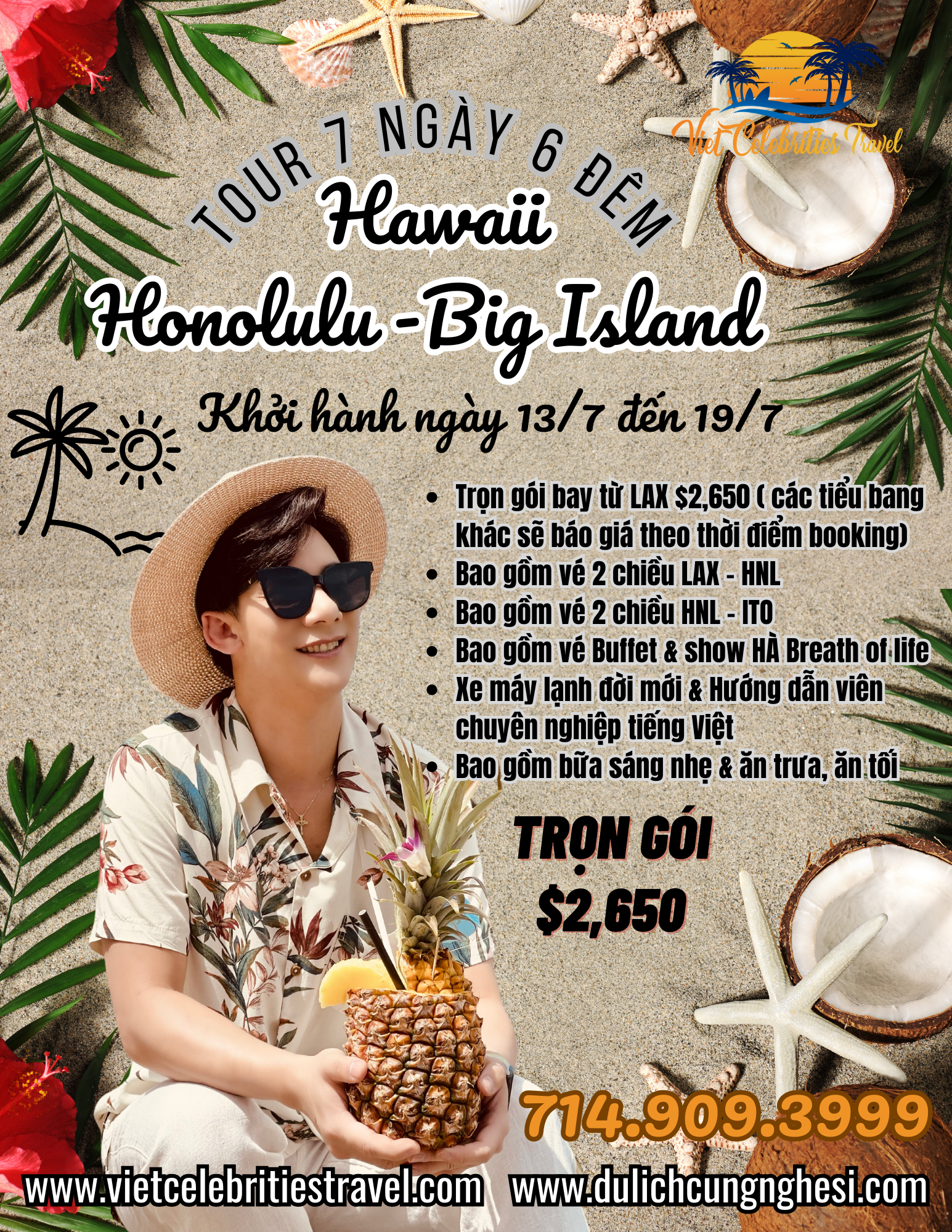 Tour Hawaii 6 ngày 5 đêm Khởi hành: Jul.26 đến Jul.30.2022